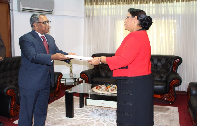 Courtesy call on Foreign Minister H.E Mme Beatrice Atallah by Ambassador Shri Subir Dutta
