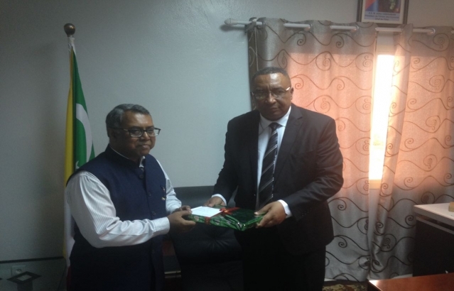 Presentation of copies of LettersofCredentials by Ambassador of India to the Union of Comoros Shri Subir Dutta to Foreign Minister HE Mr Souef Mohamed El Amine in Moroni on 30 October 2017