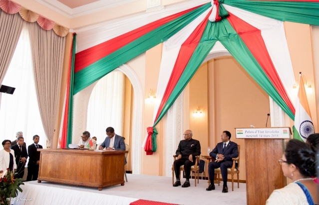 Signing of Memorandum of Understanding on Cooperative Marketing Arrangements by Ambassador Subir Dutta and Malagasy Transport Minister