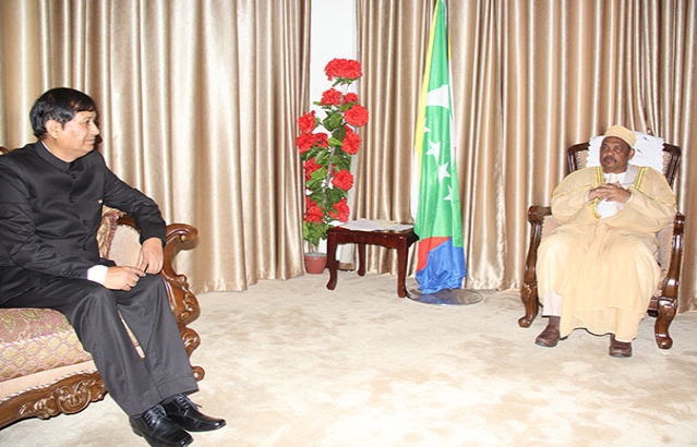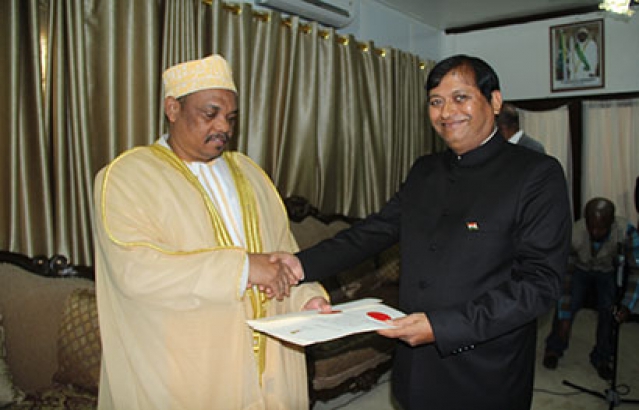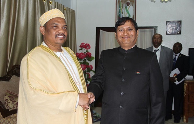 Presentation of credentials by the Ambassador HE C.B. Thapliyal to the Comorian President, HE Ikililou Dhoinine